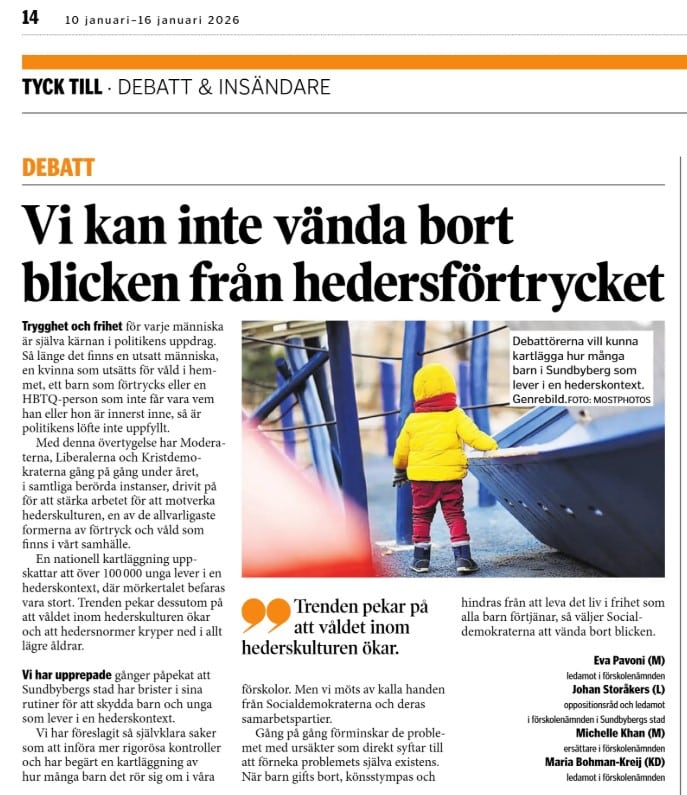” Vi kan inte vända bort blicken från hedersförtrycket Trygghet och frihet för varje människa är själva kärnan i politikens uppdrag. Så länge det…